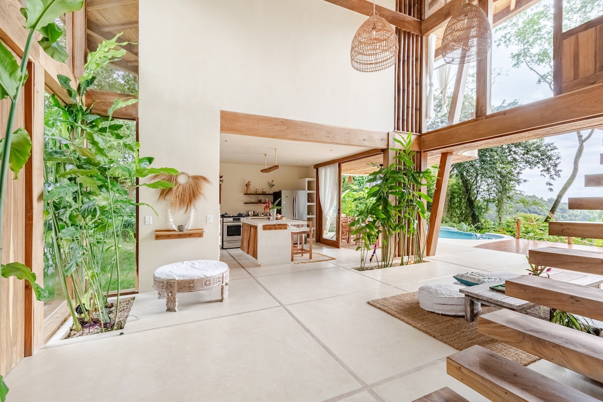 The Green House - Luxury, Design, Stunning Ocean Views and an Ecological Mindset This Bauhaus Design home combines individuality and luxury. The Green House is situated in the hills above Santa Teresa beach overlooking lush jungle with stunning ocean views. Embedded into nature, its walls of glass and the light architecture almost give the appearance of a house floating in mid-air. Being amidst the tree tops, The Green House is the perfect place to experience the flora and fauna of Costa Rica.