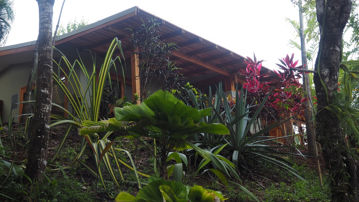 This jungle house is designed for a calm and comfortable stay, surrounded by nature. Built elevated, it features clean and contemporary architecture with natural materials, open spaces, and a strong indoor–outdoor connection. The bright living area includes an office space with large windows and a Pilates studio that opens into the living and dining areas. Ideal for guests who value nature, privacy, serene spaces, and thoughtful design. Very close to the beach and town, yet quiet and peaceful.