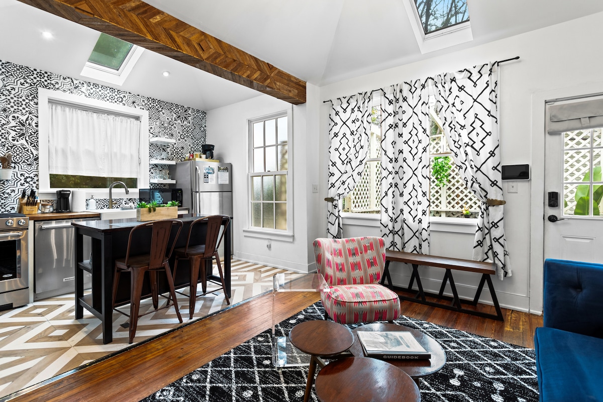 This 500 sq. ft. guest house with private entrance is located in historic Midtown. Home is just blocks from Piedmont Park, Peachtree Street, the Fox, and Ponce City Market. Walk, bike, Bird or Uber to dozens of bars and restaurants or straight on to the Beltline. Just 7 minutes from downtown and an easy 20 min Uber or MARTA ride from the airport, house is fully equipped with everything you need for a long or short stay in Atlanta. Short term rental license number: STRL-2022-00841