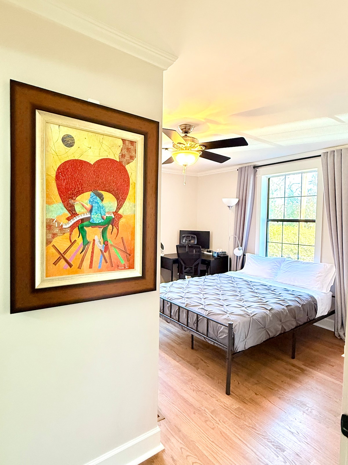 Bright, private lower level of home facing the golf course with patio & your own entry! Full kitchen w/ stove, microwave, refrig (filtered water & ice), eating area, living room w/55” flat-screen TV (WiFi, Netflix, Amazon Prime). Private, stocked laundry room. Large, quiet bedroom with king-size bed, 50” TV, dresser, closet, & comfy chair. A great get-away for casual & business travelers. Minutes from Atlanta's top attractions, 2026 FIFA games. I look forward to your visit!