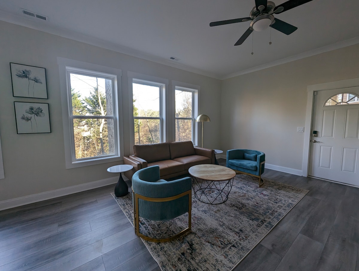 Bright, private lower level of home facing the golf course with patio & your own entry! Full kitchen w/ stove, microwave, refrig (filtered water & ice), eating area, living room w/55” flat-screen TV (WiFi, Netflix, Amazon Prime). Private, stocked laundry room. Large, quiet bedroom with king-size bed, 50” TV, dresser, closet, & comfy chair. A great get-away for casual & business travelers. Minutes from Atlanta's top attractions, 2026 FIFA games. I look forward to your visit!
