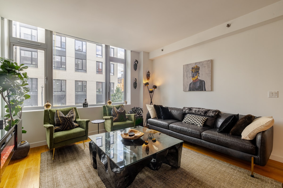 Welcome to The Mark, where historic charm meets modern luxury in this sun-filled massive Brooklyn studio. Featuring original gold detailing, soaring ceilings, and park views through floor-to-ceiling windows. This centrally-located home blends vintage elegance with contemporary comfort. Enjoy a newly renovated spa like bathroom, stainless steel kitchen, and rare stained glass accents, all across from a quiet park, perfect for pets and peaceful yet stylish stays.