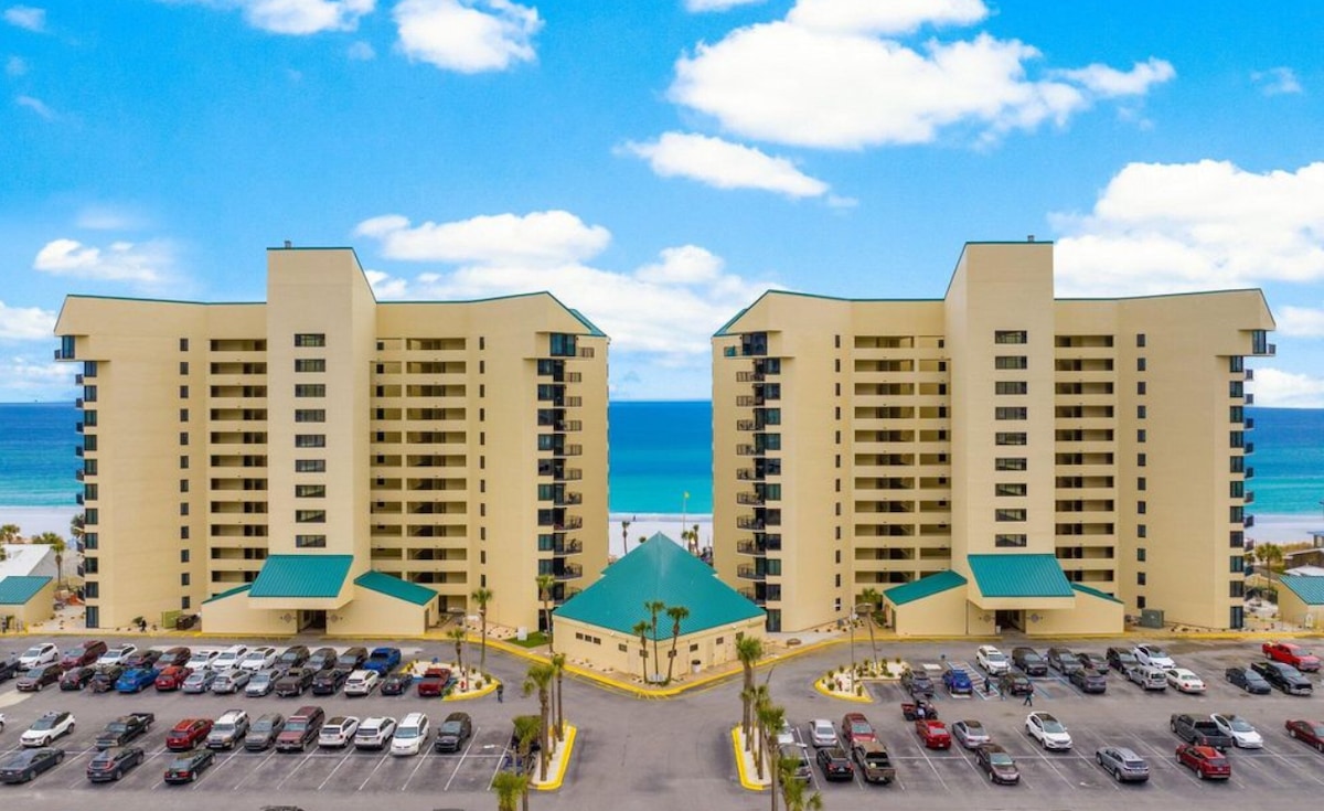 This GULF FRONT BEACH condo has a style all its own. Long Beach is a gated community and features the longest stretch of sand in PCB. This newly renovated condominium on the 7th floor has panoramic views of the Gulf from every room . Spanish-style ceramic tile floors & premium granite countertops throughout. The huge curved balcony attracts spectacular sunsets. The resort has low occupancy so the super-fast elevators won't leave you waiting. The resort has a 25 yo age minimum in order to book.