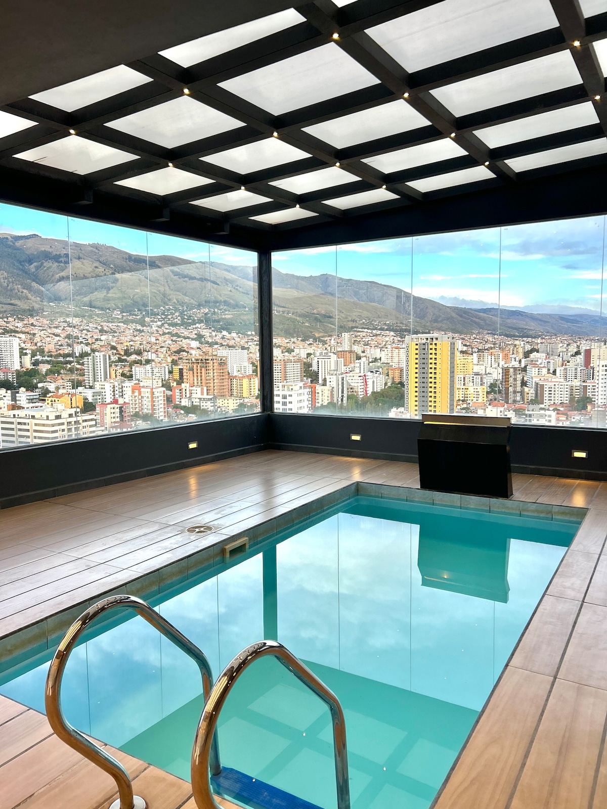 ¡Bienvenido a nuestro increíble apartamento de lujo! 🛏️habitación con cama de 2,5 plaza y clóset. 🛋️Sala con sofá cama de 2 plazas (2 huéspedes extra) 🎮consola de juego Ps4. ⛱️Terraza con Pscina y parrillero (previa reservación anticipada sujeto a disponibilidad) 🏊🏻sala de estar, parque de niños, mesa de bar 🌆Vista increíble de la ciudad. 🅿️Estacionamiento privado. 💼Espacioso ambiente para viajeros de negocios. 🏢farmacias y restaurantes a pasos. 🏬Alado del supermercado Hipermaxi. ¡Te esperamos!