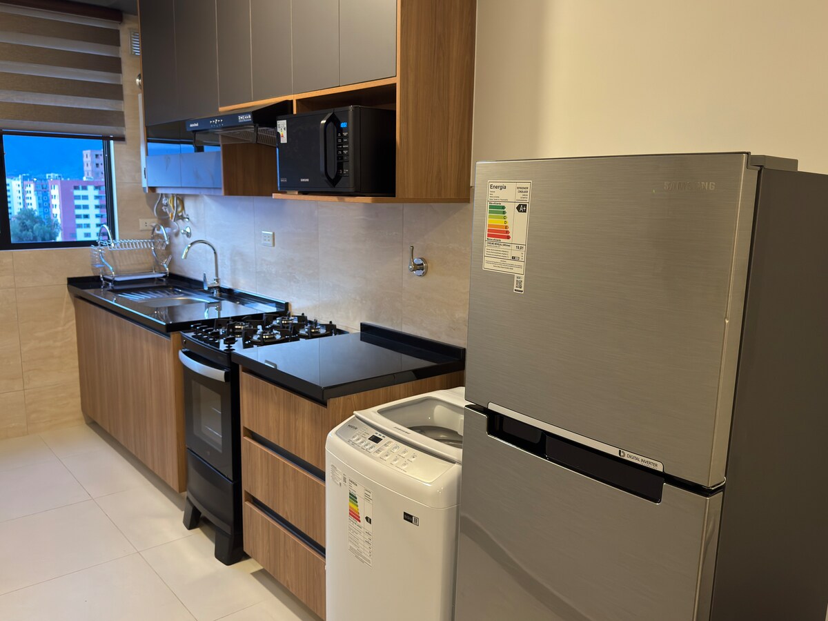 Este lugar único tiene su propio estilo en su interior, una Suite independiente con su vestidor y baño equipado. Un living amplio con su comedor para comodidad de 4 personas acompañado de una cocina súper equipada que le permite elaborar sus alimentos deseados. servicio WiFi de 100 mgps, Parqueo propio para su movilidad, una cuna si viene con un Bebé. En la zona se dispone de los mejores supermercados, Bancos, Restaurantes, cafeterías y discotecas Reserve su estadía