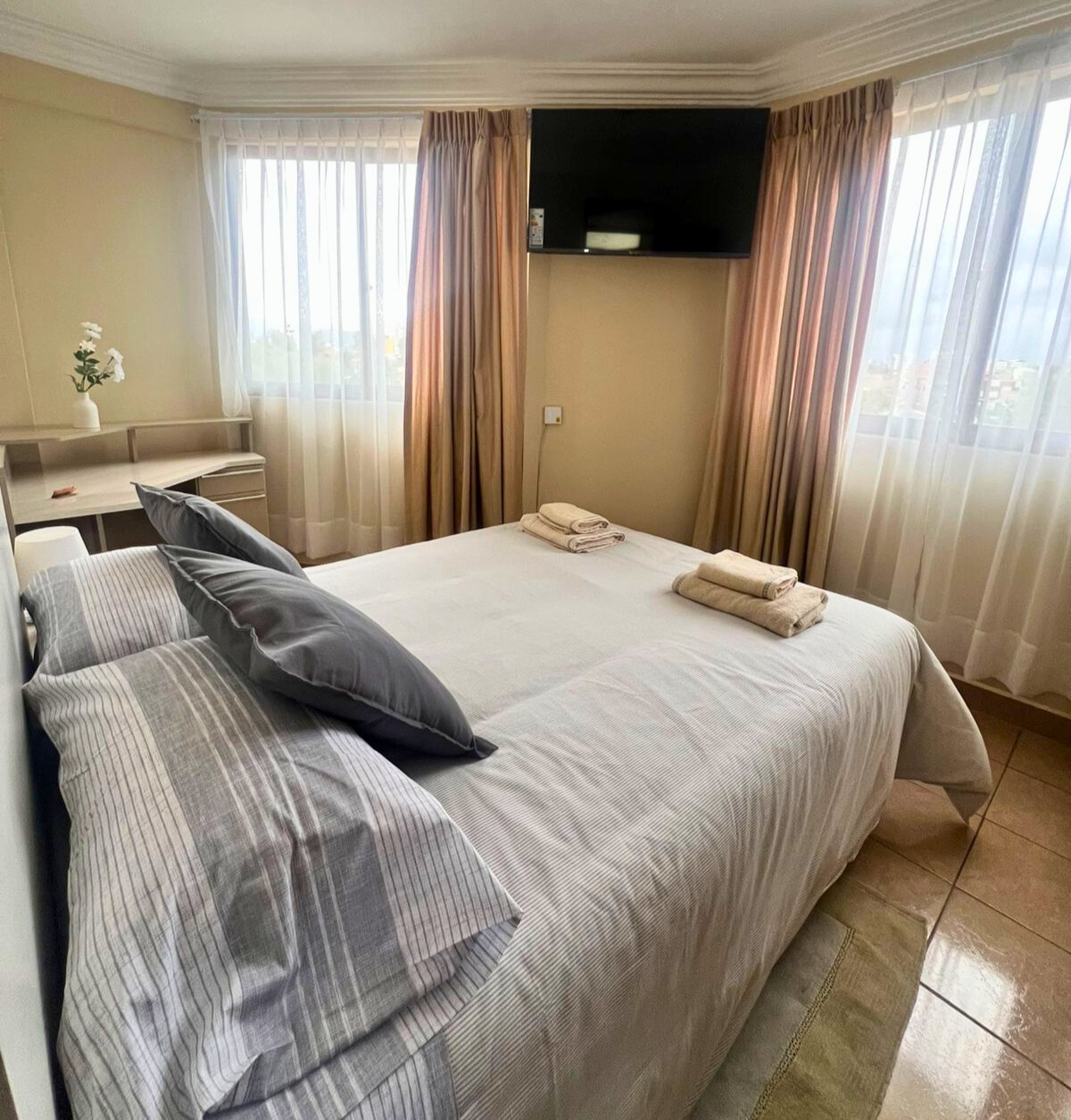 ¡Bienvenido y siéntete como en casa! Disfruta de LA MEJOR vista de Cochabamba desde el edifico mas alto de la ciudad y en la comodidad de un moderno departamento equipado con todo lo necesario para una estadía inolvidable. Relájate en un ambiente amplio, cómodo y acogedor de 1 habitación, ideal para un descanso reparador, con una hermosa terraza, WiFi de alta velocidad, cocina equipada para tus comidas y más. Perfecto para quienes buscan comodidad y estilo. ¡Te esperamos, reserva hoy!