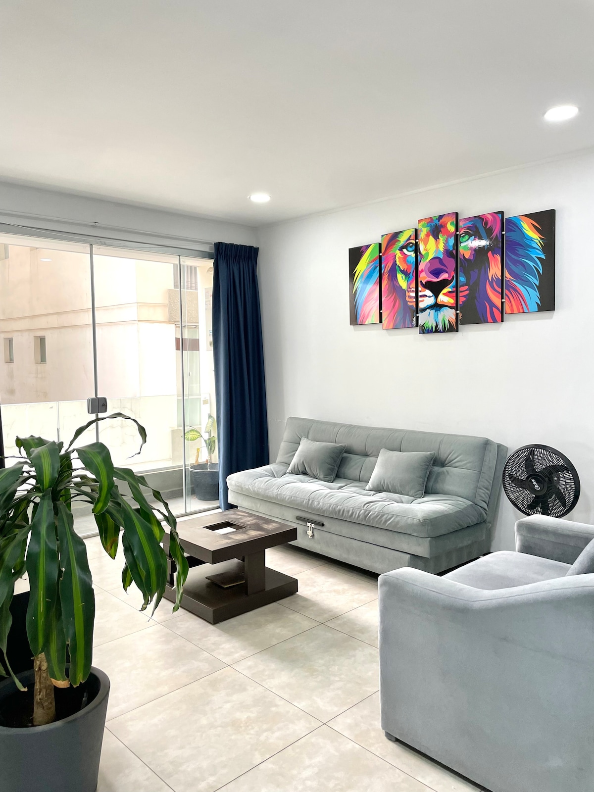 New and Modern Apartment on the Main Avenue of the Best Area in Cochabamba. ✨ In front of the Best Mall in Cochabamba, surrounded by restaurants, shops, supermarkets, and parks. ✨ It has 2 bedrooms with Queen-sized beds and a 2-person sofa bed. ✨ Equipped kitchen with refrigerator, microwave, and oven. ✨ Fiber Optic Wi-Fi, Smart TV, Alexa. ✨ Common areas (by prior consultation): Terrace with Pool and the best panoramic view, Gym, Grill.