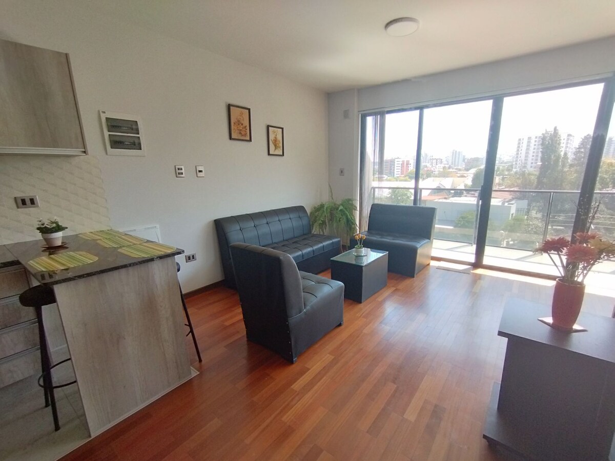 Take a break and relax in this peaceful oasis. * Department located in the North zone of the city. 5 minutes from the north commercial area: La Recoleta, Hupermall, Paseo Aranjuez ... * We disinfect all environments with quaternary ammonium and colloidal silver for Health and Safety related to COVID-19 and other diseases