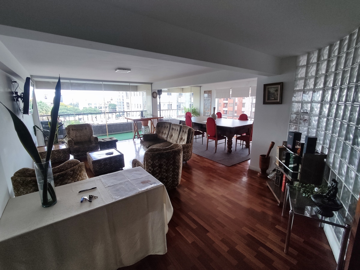 ¡Bienvenido a nuestro apartamento de lujo en una ubicación privilegiada! 🏢 Espacioso cowork para viajeros de negocios. 🌇 Terraza privada con parrillero y sauna a vapor. 🚗 Estacionamiento privado en el edificio. 🚍 Transporte público en la puerta. 🛍️ Tiendas, farmacias y restaurantes a pasos. 🛒 A 2 cuadras del Shoping paseo Aranjuez y a 4 del HuperMall. Reserva ahora para una estancia cómoda y conveniente. ¡Te esperamos!