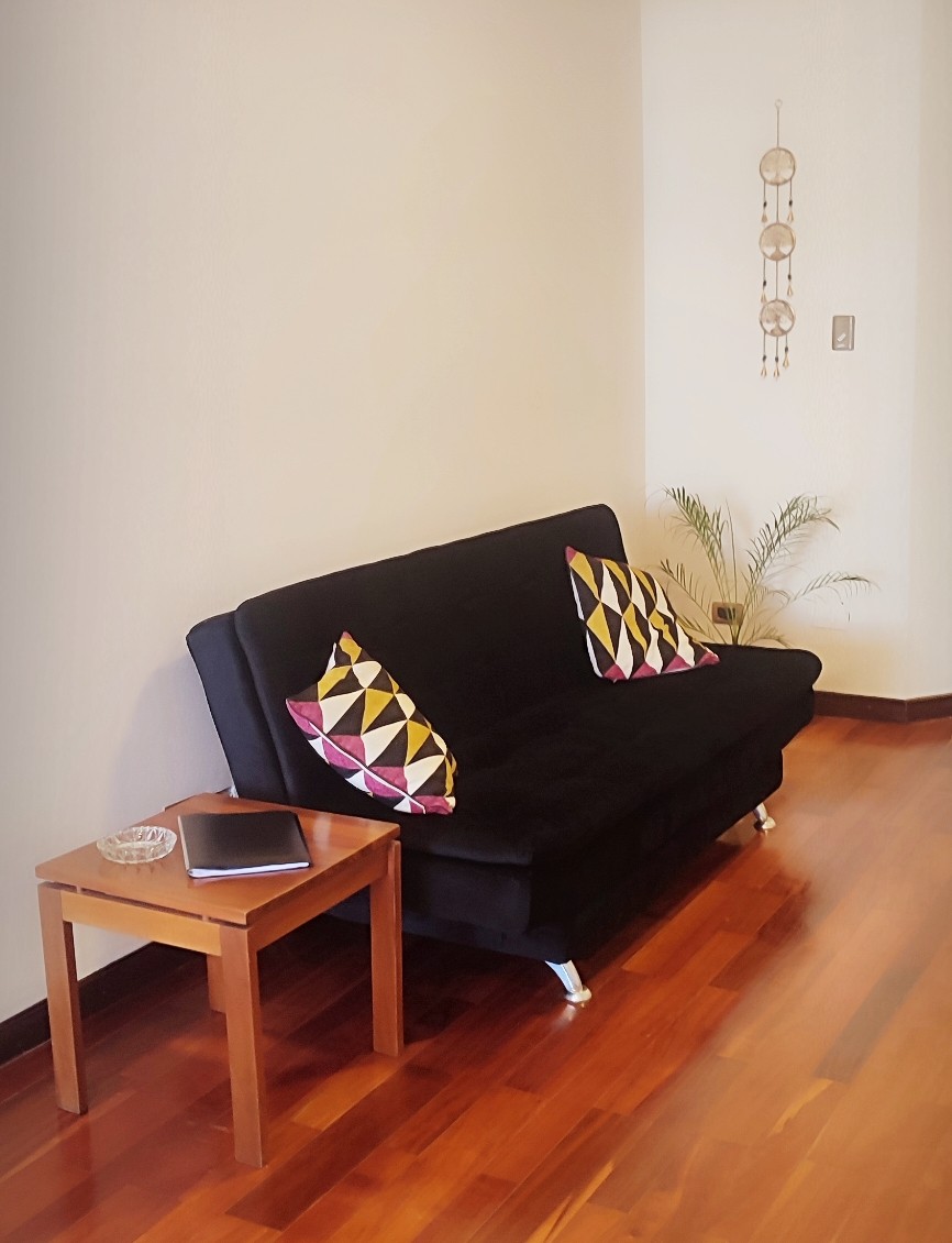 Relájate en este espacio seguro, tranquilo, cómodo y sin preocupaciones; en zona top de Cochabamba. Frente a un hermoso parque para caminar y ejercitarse. Edificio nuevo que cuenta con amplia sala de trabajo y WiFi. Cercano a cafeterías, Super Mercado, centros comerciales y restaurantes. El estudio tiene sala de estar, TV de 65”, WiFi, sofá cama, cama Queen, cómodo baño y cocina equipada con microondas, horno eléctrico, cafetera, caldera eléctrica, refrigerador y accesorios.