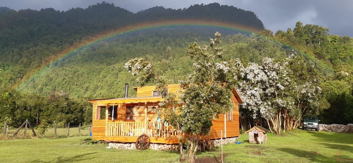 Es una cabaña rústica tipo Tiny house(cabaña pequeña) sustentable para 2 personas. MUY IMPORTANTE :No tiene tv, cuenta con un pequeño frigobar, secador de pelos, cuenta con cocina a leña y aire acondicionado frío calor. Cuenta con una tina caliente tiene costo extra de $40.000 pesos. Rodeada de árboles nativos fué construida tratando de mantener el equilibrio con el alrededor. Hay un fogón al aire libre. A 1 kilómetro y medio está el pueblo de Río Puelo y a 3 kilómetros de las Termas del Sol