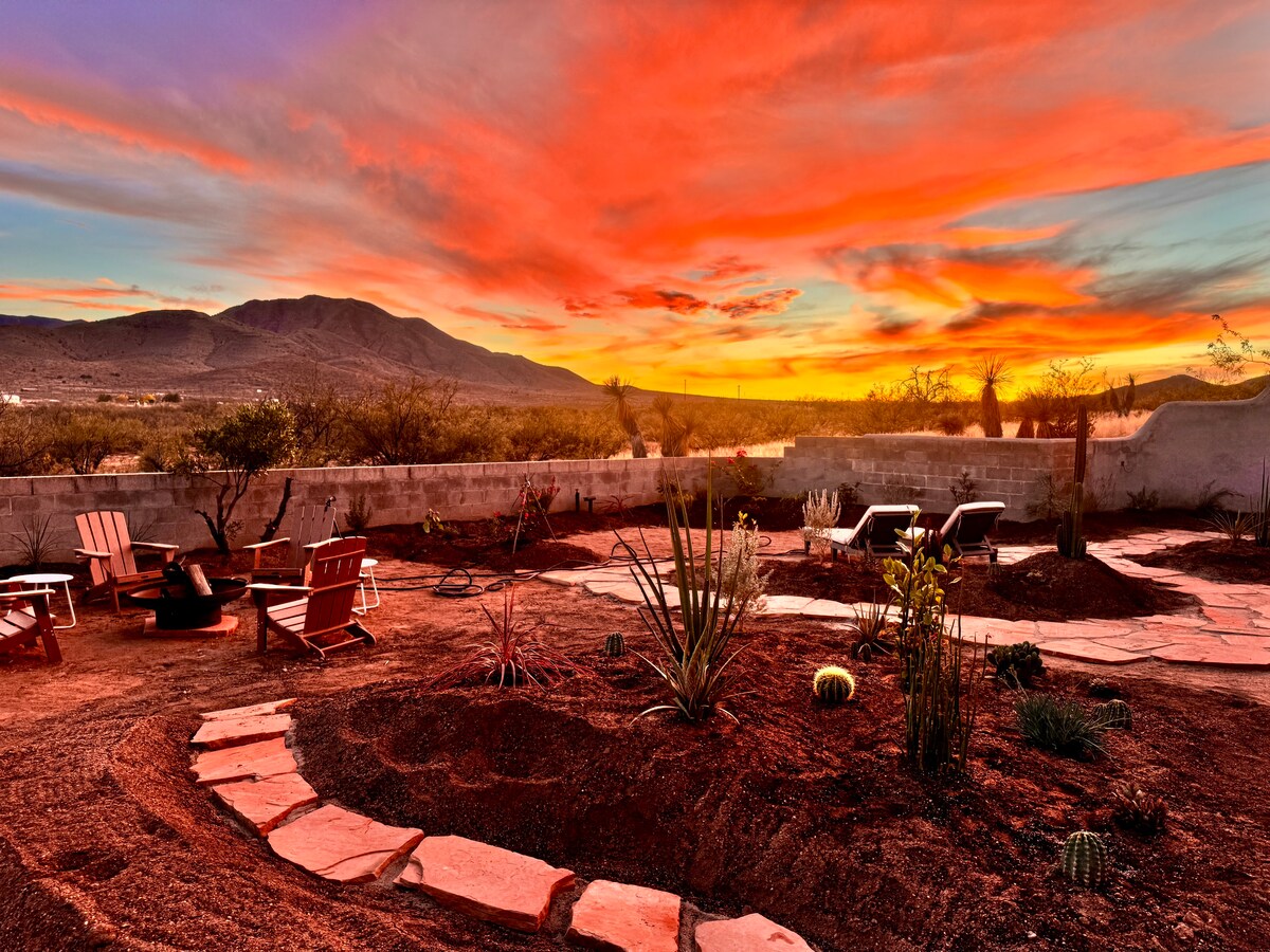 Our private entrance entire second story has a cozy atmosphere! It’s located off Middlemarch, heading up to the adventurous Dragoon Mountain area where people like to hike and go off roading. You have a spectacular view of the Dragoon Mountains from your 32 ft patio or cozy downstairs fenced area and perfect view to watch the sunrise or sunset. We are only 4 miles (2 miles as the crow fly's) from the Historic town of Tombstone. There is a BBQ. Directv is on your 55" Smart TV. Pet friendly!