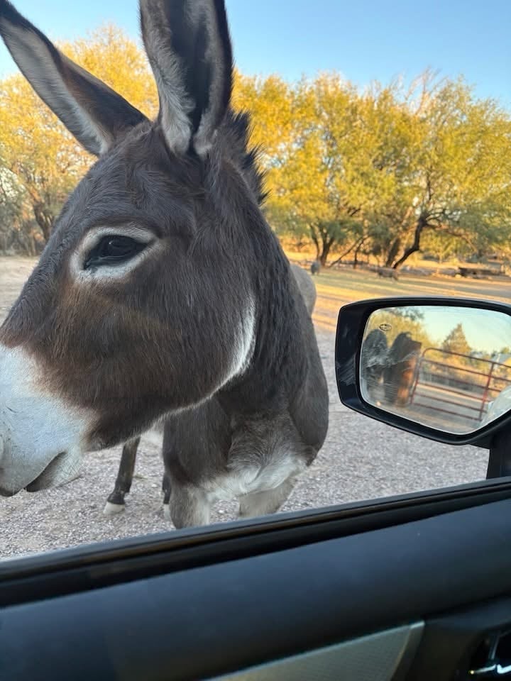 Just 3/4 mile north of I-10, Kassandra is an artfully updated 40ft RV fully equipped fifth wheel RV nicknamed “the micro mansion,” a pet-friendly elegant desert getaway in a secluded ranch setting. Enjoy your morning beverage hanging out with donkeys, peaceful views, and a majestic agave garden that attracts dozens of species of birds. Come here to work remotely, create, or relax. Or why not a combination of all three?