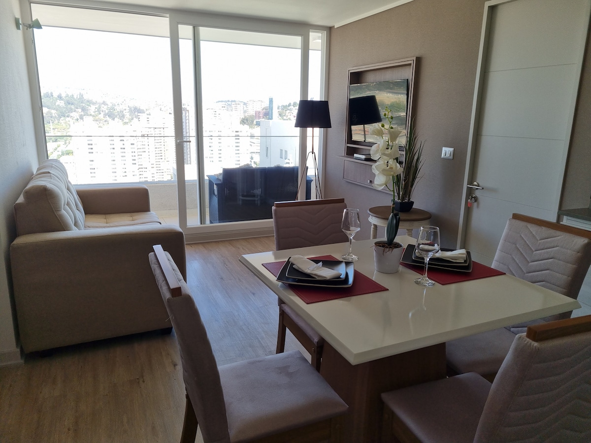 Welcome to "Oasis Costero" A new, fully equipped apartment on the waterfront with an ocean view in Concón. - Outdoor pool available between November and March. - Private parking. - Spacious terrace with ocean view equipped with an electric grill. - Includes bed linens and towels. - WiFi, and a Smart TV. - Fully equipped kitchen. - Safe and quiet area. - Just steps away from Beaches, Restaurants and Bike Paths.