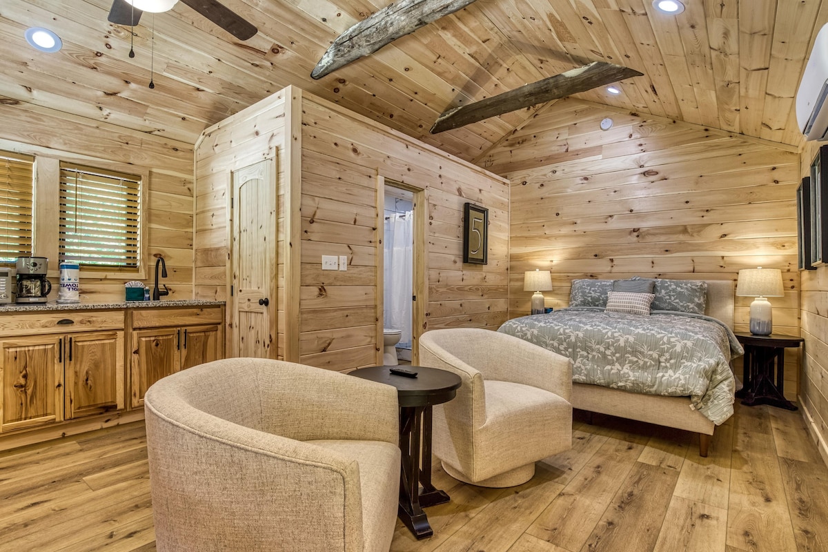 Welcome to “Honeybee Cottage ” a one-room cabin that is a true gem nestled in the heart of nature at the Greenbriar Preserve Community. Enjoy the cozy sitting area, modern kitchen with granite countertops, and a spa-like 6' shower. The 40x8' deck overlooks a gentle creek, perfect for relaxation. This cabin offers a private retreat with access to community amenities like a Pickleball Court, fire pits, grills, and picnic tables. Book your tranquil escape today!