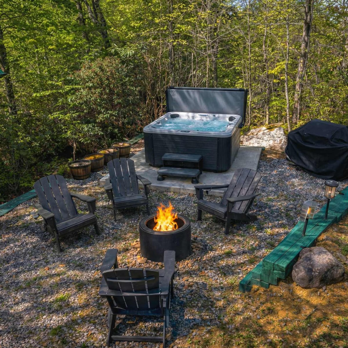 斯莫基里奇度假屋 | 自然环境中的热水浴缸 | 篝火