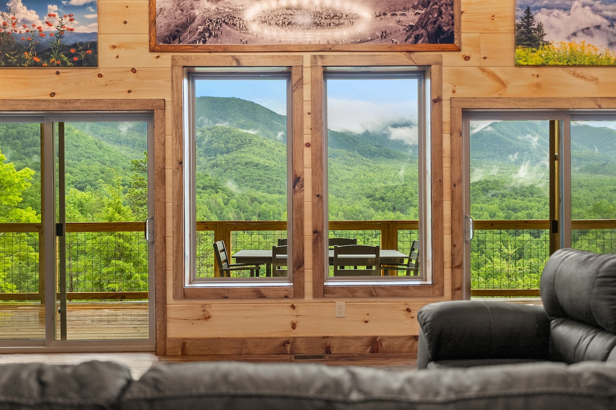Heated Indoor Pool Cabin just 25 min to Gatlinburg! Full mountain view from every room without the steep scary windy roads. 7 min to Great Smoky Mountain National Park entrance with hiking, fishing & waterfall trails! 🐾 Pet Friendly with yard space for pets and kids to play 🛏 Accommodates 12 •5 King Beds w/ 5 en-suite Bathrooms + Each bedroom has a mountain view! •Queen sleeper sofa 🎱 Entertainment & Game Room Loft •PoolTable •Indoor Pool •HotTub •Multicade •Smart TVs •Fire Pit