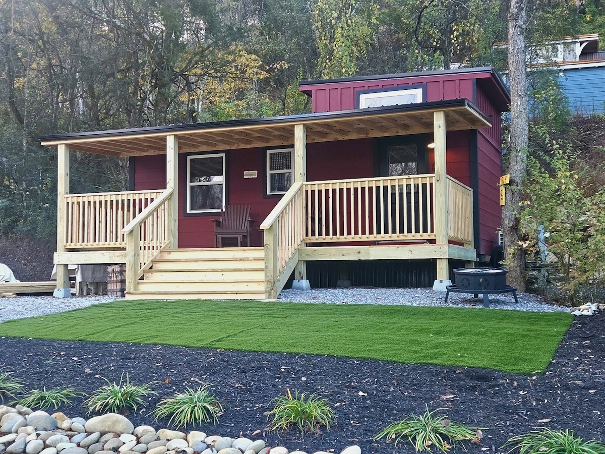 Whether you're looking for a peaceful retreat or an adventurous escape, "Lady A" is a unique opportunity to unwind and recharge in the great outdoors. Designed to provide a comfortable and cozy stay, while still allowing you to feel fully connected to the natural world around. With dense forest bordering a river, relaxation & adventure awaits at every turn. Many adventures onsite & nearby: Winery-13m Drive thru Safari Park-7m Whitewater Raft-28m Smoky Mtns-45m Dollywood-45m Zipline 25m +more.
