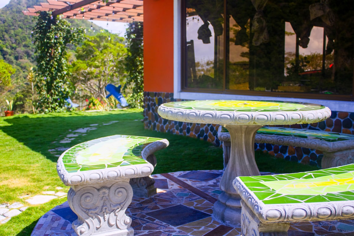 La Pomarrosa , un lugar magico, rodeado de una exuberante vegetacion y un pequeño riachuelo que te dara calma a tu diario vivir que nunca olvidaras y te hara regresar una vez mas , completamente equipada . Muchas aves y pequeños animales te matendran entrenido , deleitandote con una taza de cafe y porque no, una copa de vino . El Valle de Anton un Lugar Magico en las montañas de la Provincia de Cocle.