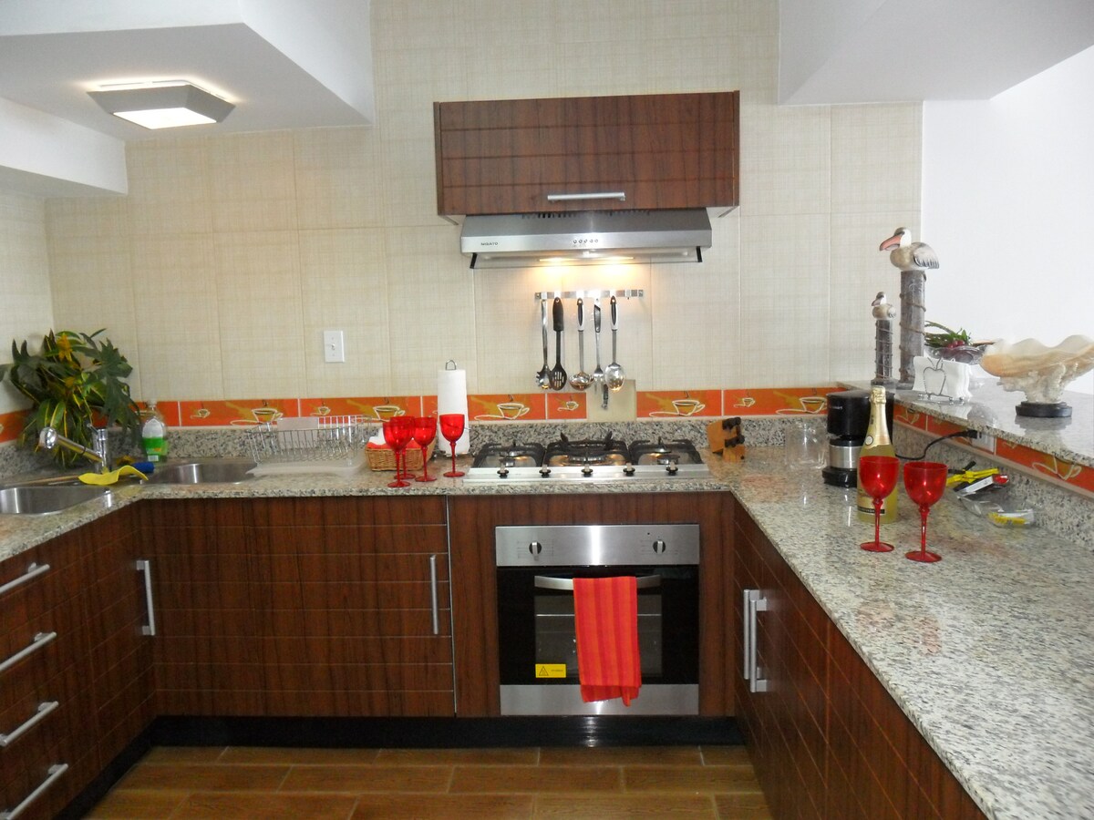 Beachfront apartment with social area, swimming pool, events room, direct beach access, 24/7 security, back up generator and covered parking spaces. Next to Decameron Hotel, Mantaraya Golf Course and 10 minutes from a supermarket and a farmacy. The apartment has all major kitchen appliances and full laundry room. All rooms have split AC units. Living room, kitchen and balcony are at the first level. Bedrooms and bathrooms are on the second level. The master bedroom overlooks the balcony.