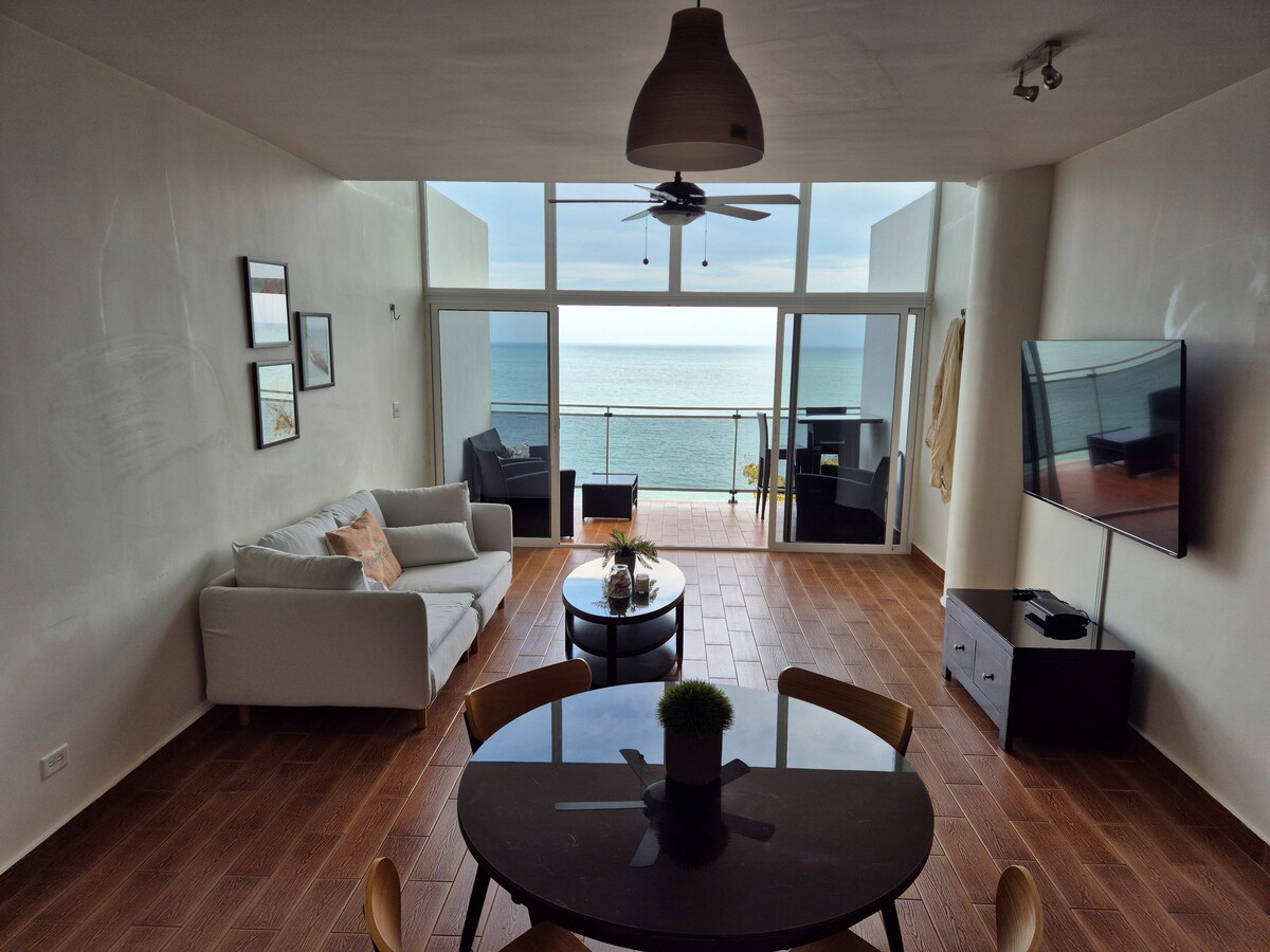 Wake up to the ocean in this beautiful beachfront loft in Farallón, located in the exclusive Miramar Loft next to the Decameron Hotel. Relax on the balcony with sea views, enjoy the pool, and walk to the beach with private cabanas on the sand. The apartment offers 2 bedrooms, a full kitchen, A/C throughout, and fast Wi-Fi. Just 2 hours from Panama City. Book now and live the beach experience you deserve!