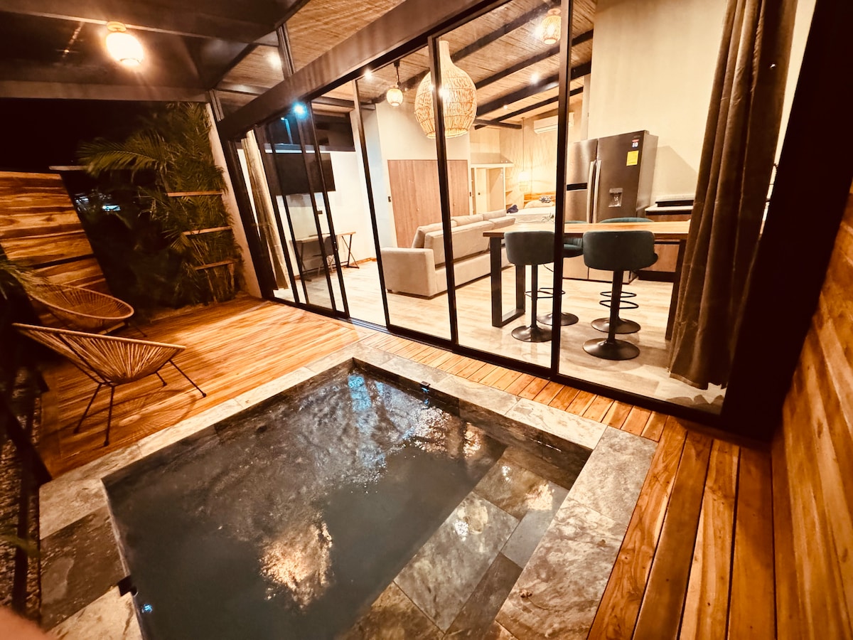 🔹We offer FOUR private suites, ideal for solo stays, romantic getaways, or group travel.🔹 Garden Suite One | Garden Suite Two | Garden Suite Three | La Casita Garden Suite One is a bright and tranquil retreat at the front of the property, offering peaceful garden views, lush tropical paths, and direct access to the spacious pool. Inside, enjoy a king bed, ensuite bath, spa robes, kitchen, A/C, Wi-Fi, FireStick TV, BBQ, and more for the perfect pura vida escape.