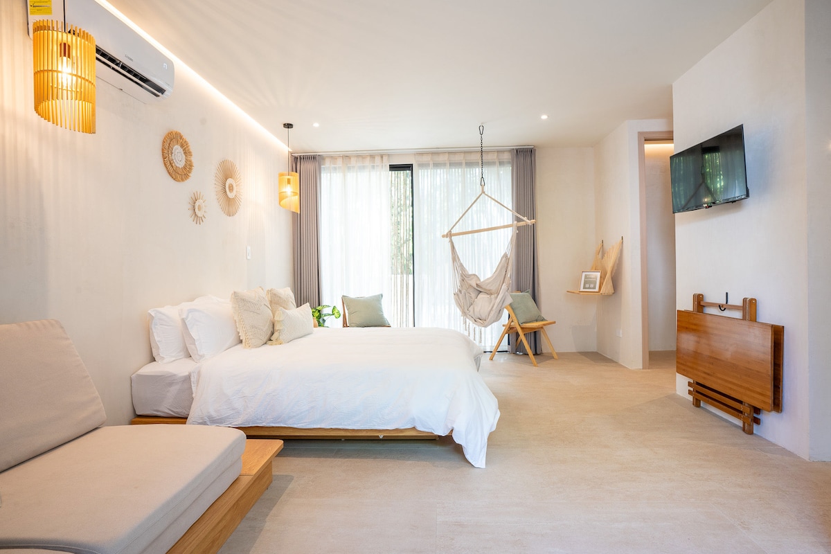 Explore Anika Private Suites in Playas Del Coco, minutes away from the beach, bars, and restaurants. Enjoy shared amenities including a plunge pool, TV bar, fully-equipped kitchen, and a game area with foosball, ping pong, and more. Our 10 well-appointed rooms offer comfort with orthopaedic mattresses, private bathrooms, and modern amenities. Also available to book the entire space for your special occasion or celebration! Contact us to reserve your dates! Based on availability