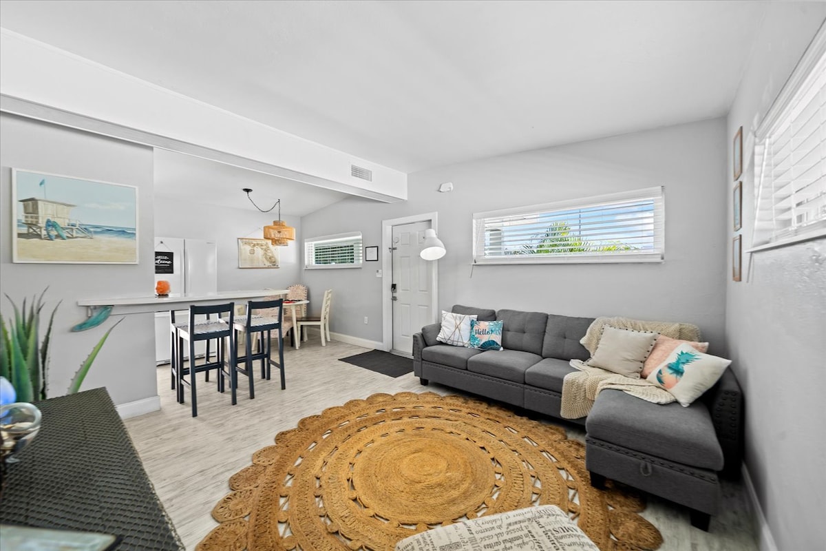 This downtown Cocoa Beach apartment is the perfect beach getaway, close to all the action! Located steps from the beach and walking distance to restaurants, bars, and local shops! It is a quick drive to the beautiful Banana River, a 14-minute drive to Port Canaveral, and a 33-minute drive to Kennedy Space Center Visitor Complex. The surfer style decor will make you feel like a local.