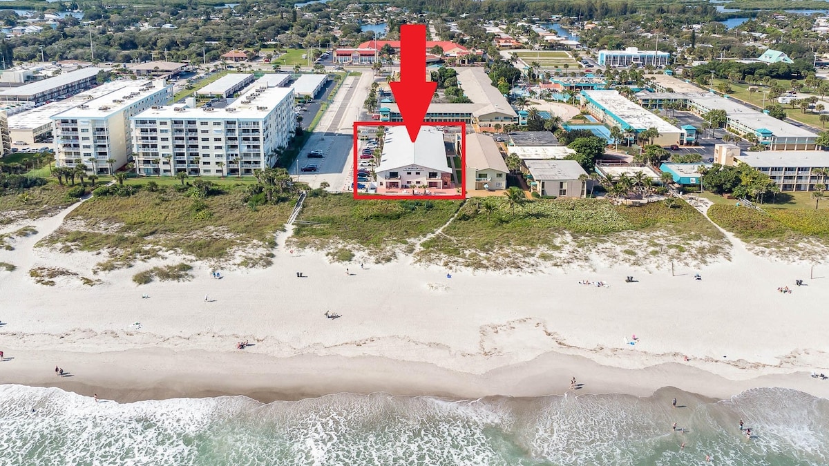 Savor Panoramic Ocean Views from the private balcony of this Beachfront second-floor condo. * Private beach access from backyard * Oceanfront balcony with comfortable seating * Convenient downtown Cocoa Beach location * Bedroom with queen bed * Full kitchen * 2 Smart TVs with cable * Free WiFi * Free assigned parking space * Full bathroom * In-unit washer and dryer * Queen-sized foldout futon couch * Beach gear and towels * Complimentary toiletries, coffee and tea