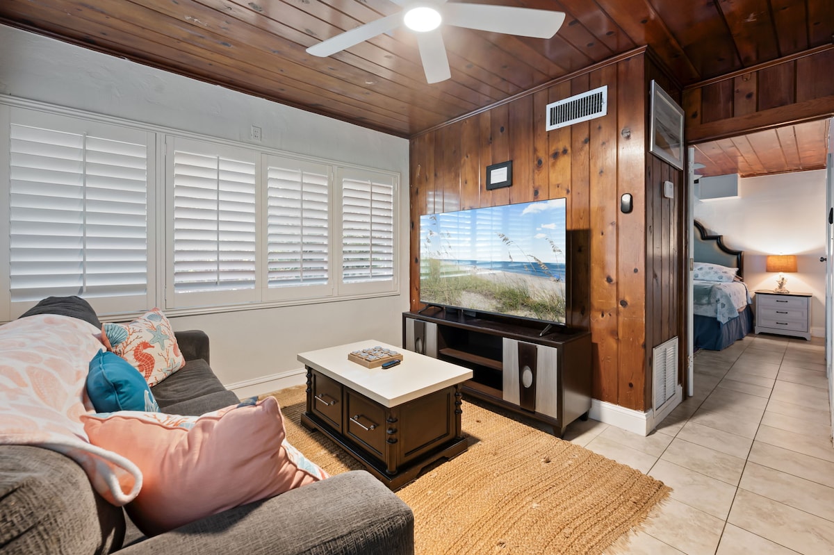 ☀️ Spring is Here! 3 Min walk to the Beach!!! Welcome to Town Center Cottages — your cozy, walk-to-everything beach retreat in the heart of Cocoa Beach. Whether you're watching a rocket launch from the sand, playing in the surf with our free beach gear, or grilling dinner after a day at Kennedy Space Center, this is the place where your family memories are made What you'll Love ❤️KING BED! ❤️Beach chairs, wagon, umbrella, cooler ❤️Free WiFi & Parking ❤️Fenced Yard!