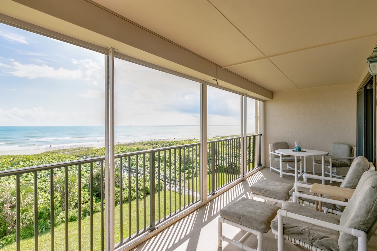 A wraparound balcony that offers the most beautiful views from the living room. Master bedroom opens up to the balcony. Three flat screen TV's & WiFi available. Beach chairs are provided for your enjoyment. Watch rocket launches and cruise ships from your balcony. Sandcastles is a well maintained complex with a heated pool, hot tub, community room, tennis courts, and so much more! Come enjoy your slice of paradise... the sand between your toes and the cooling waters of the Atlantic Ocean!
