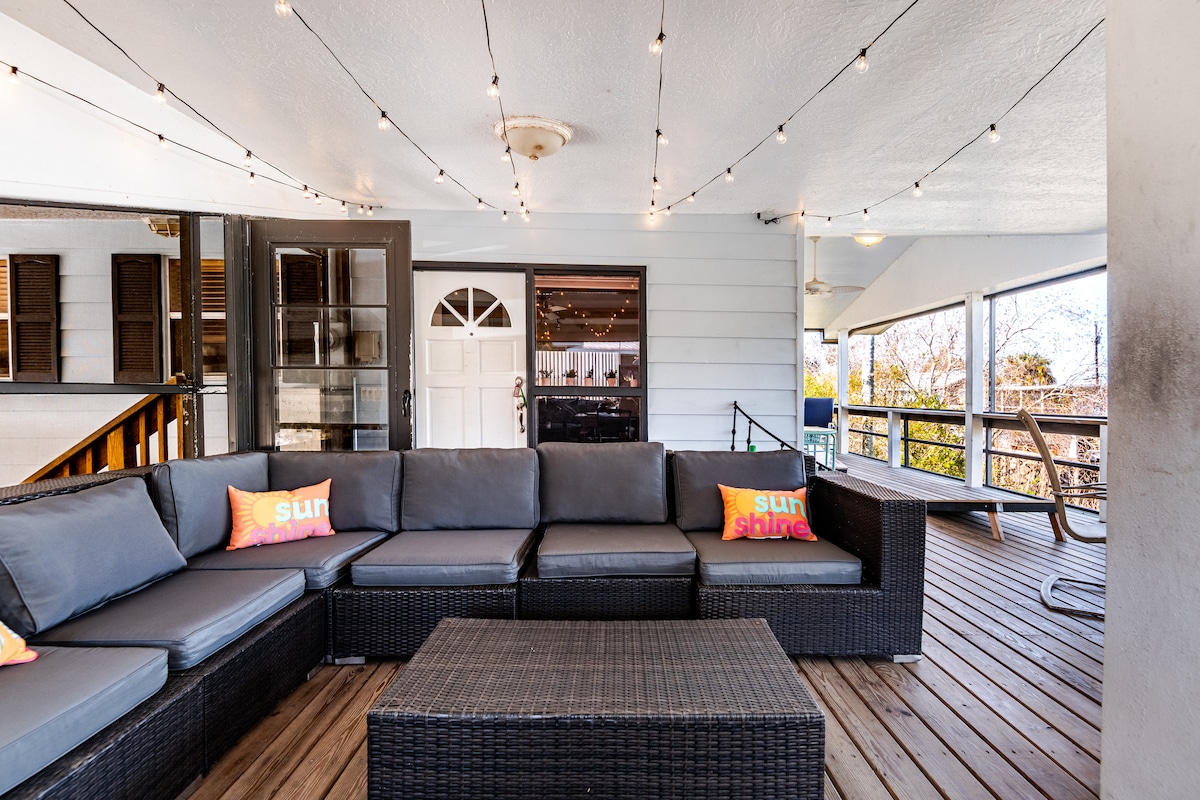 Our 'boho bungalow' is a short stroll to downtown Cocoa Village-enjoy quaint restaurants, pubs, breweries, yoga studio, coffee shops, antique stores+art galleries. Approximately 8 miles to Cocoa Beach and other nearby attractions and outdoor experiences-bike/walk/run along Historic Rockledge Drive, stand up paddle boarding, kayaking, boating, sailing, fishing charters, Cocoa Village Playhouse, Kennedy Space Center, Brevard Zoo, USSSA Space Coast Complex, Port Canaveral/cruise ships and more!