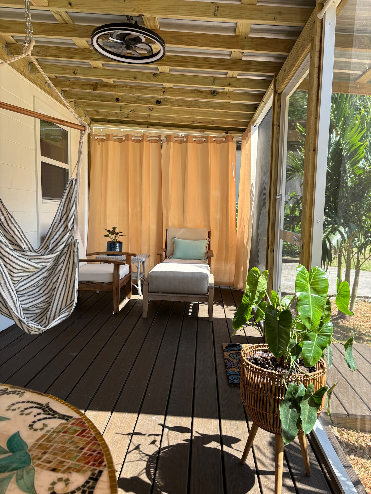 Escape to our cozy Florida Room-inspired studio retreat in Cocoa. Built in 2024, this 400 sq ft sanctuary offers a spa-like vibe perfect for 2 guests. Enjoy a queen bed, full kitchenette, and a private screened porch. Located one block from the Indian River, you're minutes from Cocoa Village, beaches, and Port Canaveral. Experience rocket launches from the Space Coast in this tranquil, unique getaway. Shared kayaks, bikes, beach gear, and lawn games are included for your enjoyment.