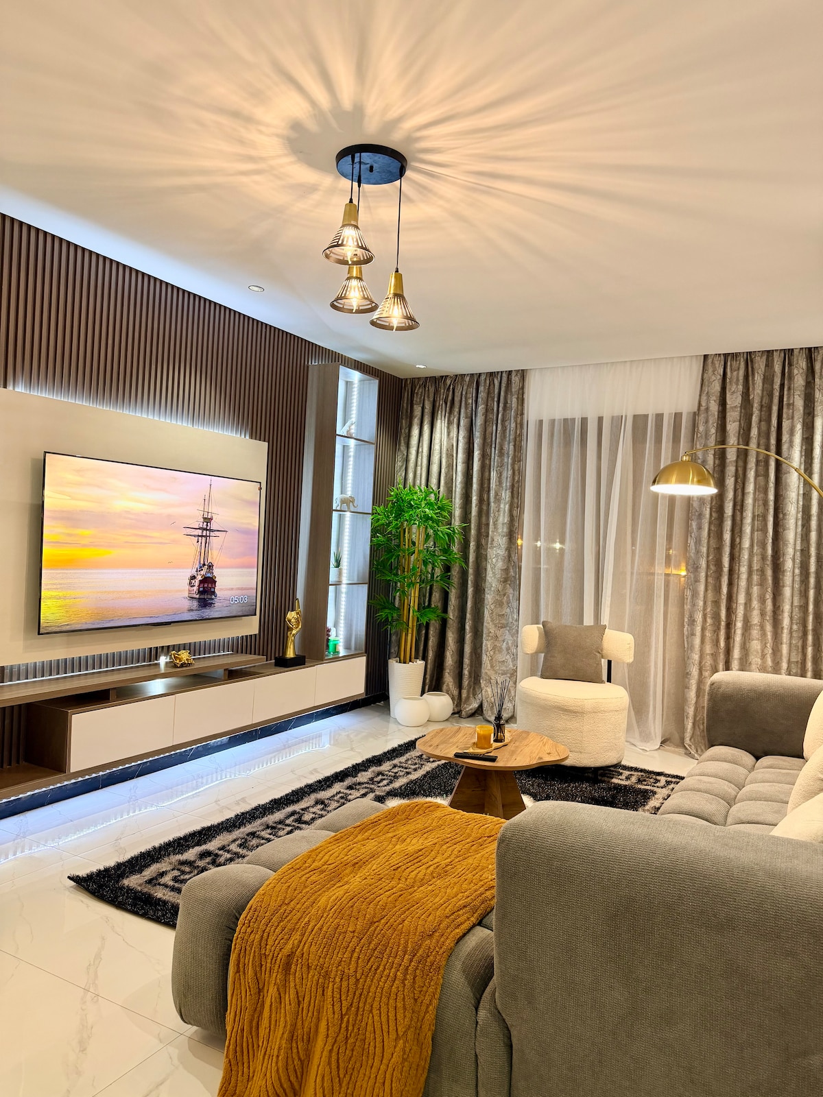 ✅️ Top 10% most loved homes on Airbnb. ✅️ Free daily cleaning. ✅️ 24-hour security. Enjoy an elegant and centrally located accommodation in the heart of the city and immerse yourself in the cozy atmosphere of this charming three-bedroom apartment in Zone 4. Good vibes are celebrated in a harmony of art, music, and gold, where softness and light les tableaux ont étés peints par moi même et les meubles dessinés par mes soins.