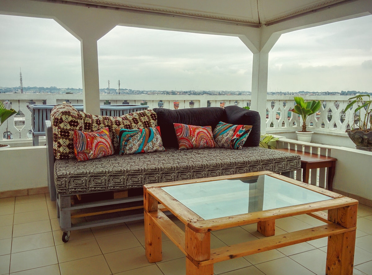Un duplex très fonctionnel dans le vieux Cocody au centre d’Abidjan avec une terrasse sur le toit. 🔷 WIFI : connexion fibre 500 mégas down (vous trouverez difficilement mieux à Abidjan) 🔵 CLIMATISATION : 2 splits d’allège au salon et un split « inverter » dans chaque chambre 🟦 EXPO : plusieurs tableaux de Nick Amon