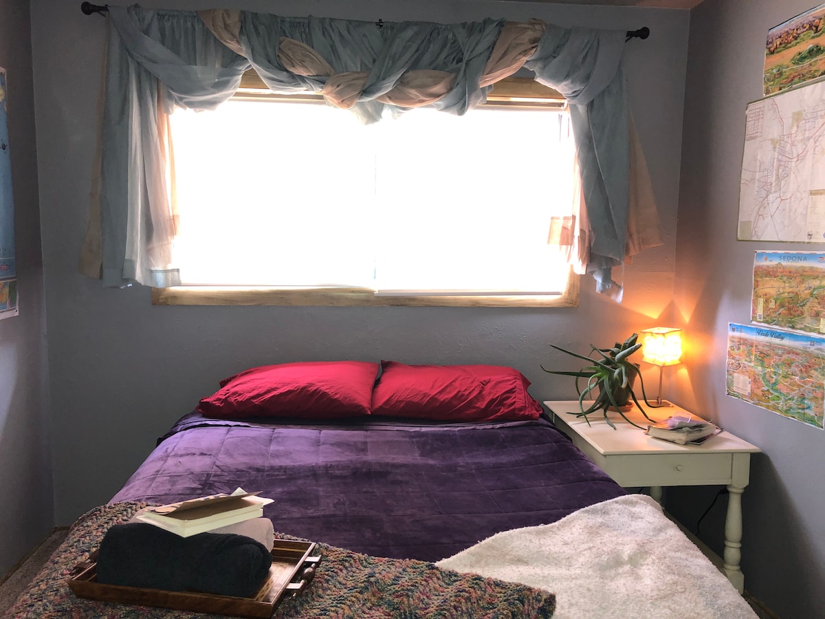 This recently upgraded local Flagstaff home is 10-15 minutes from everything and only 20 minutes to Sedona trails. Our cozy one-bedroom has a private entrance, new queen sized mattress, small sitting area by the window, beautiful retro kitchenette and large bathroom with tub. Kitchenette with ample appliances. Dog friendly for one dog, sorry no cats Your space shares two walls with the main house. Extended stays will add an additional $45 per week for cleaning and changing linens