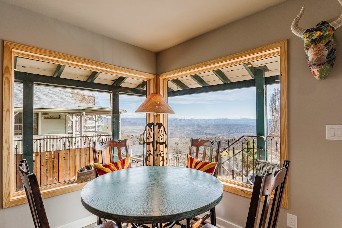 One of the most AMAZING VIEWS of any Sedona Casita/Villa! Currently in the top 1% of Sedona homes. Super comfortable King Bed and a Queen memory foam pull out. Fully equipped large kitchen and a dedicated work space with a view! Faster internet available in Sedona. Full bath and shower combo and large walk-in closet. Over 150 channels including HBO. Dedicated BBQ grill. No stairs. There is a another Villa (Mammoth Rock Oasis) directly below you. There are NO SHARED SPACES.