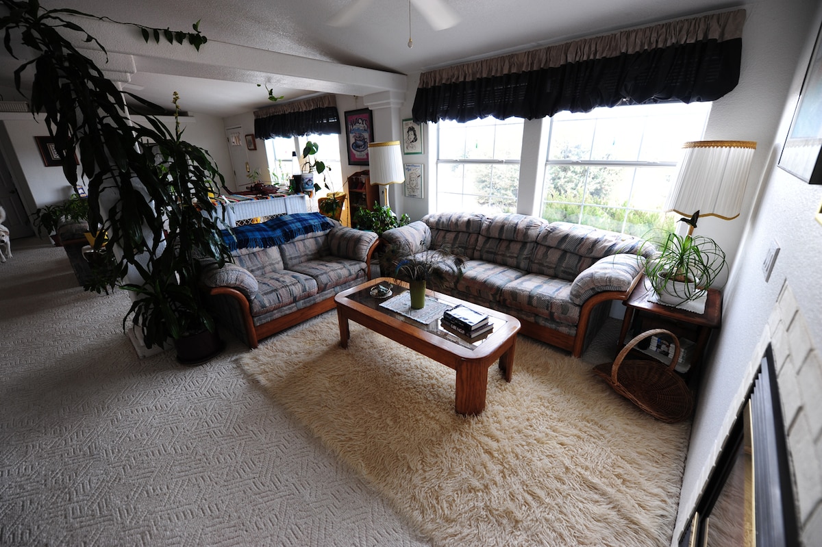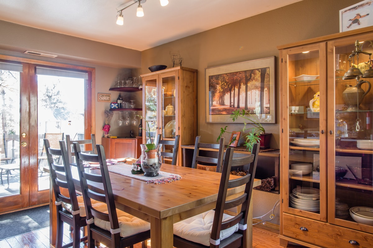 Enjoy a daily breakfast on the porch. This special architectural home was built to take advantage of the expansive views from the elevated house and deck. Enjoy the resort like setting and grounds. A flat walkway takes you straight to the front door. Cloud Nine is only 5 minutes from downtown Prescott, and close to hiking at Thumb Butte. A second room and bath are available at this property, "Cloud 9 ~ Library Room" View the room using this link; Airbnb.com/h/cloud9libraryroom