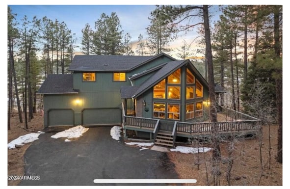 Decorated for the holiday season, this beautiful mountain Chalet provides a spacious 2 level floor plan with vaulted ceilings, large windows, fantastic views, and a large game room!! The non-smoking home has 4 bedrooms and 3 baths (2 on main floor and 1 in the lower level), and sleeps up to 8 people. This lovely cabin is just 20 miles south of Flagstaff, 30 miles east of Sedona, and 90 miles from the Grand Canyon! STR-23-0275