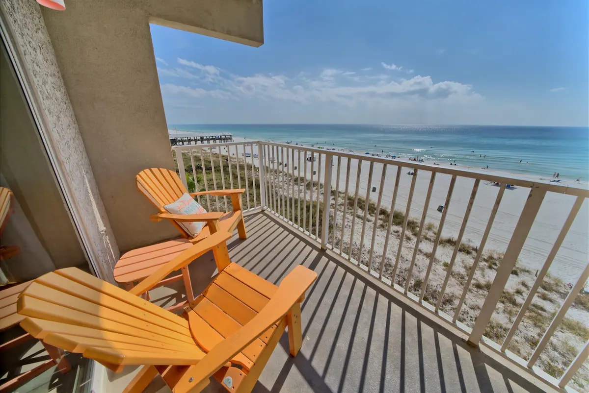 🏝 BEST IN PCB 🏝 It doesn’t get much better than waking up to a stunning ocean view from your main bedroom and stepping right onto a private balcony overlooking the breathtaking sunrises over the Gulf. Start your day with a warm cup of coffee as you take in the serene beauty of the emerald waters. In the evening, unwind with a glass of wine while watching dolphins gracefully swim by. Step directly onto the sugar-white sandy beach, unfold your chairs, and soak up the Florida sun. Perfect getaway