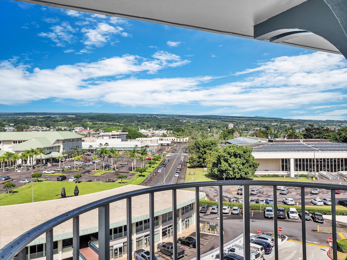 希洛中心单间公寓,带泳池和湖景