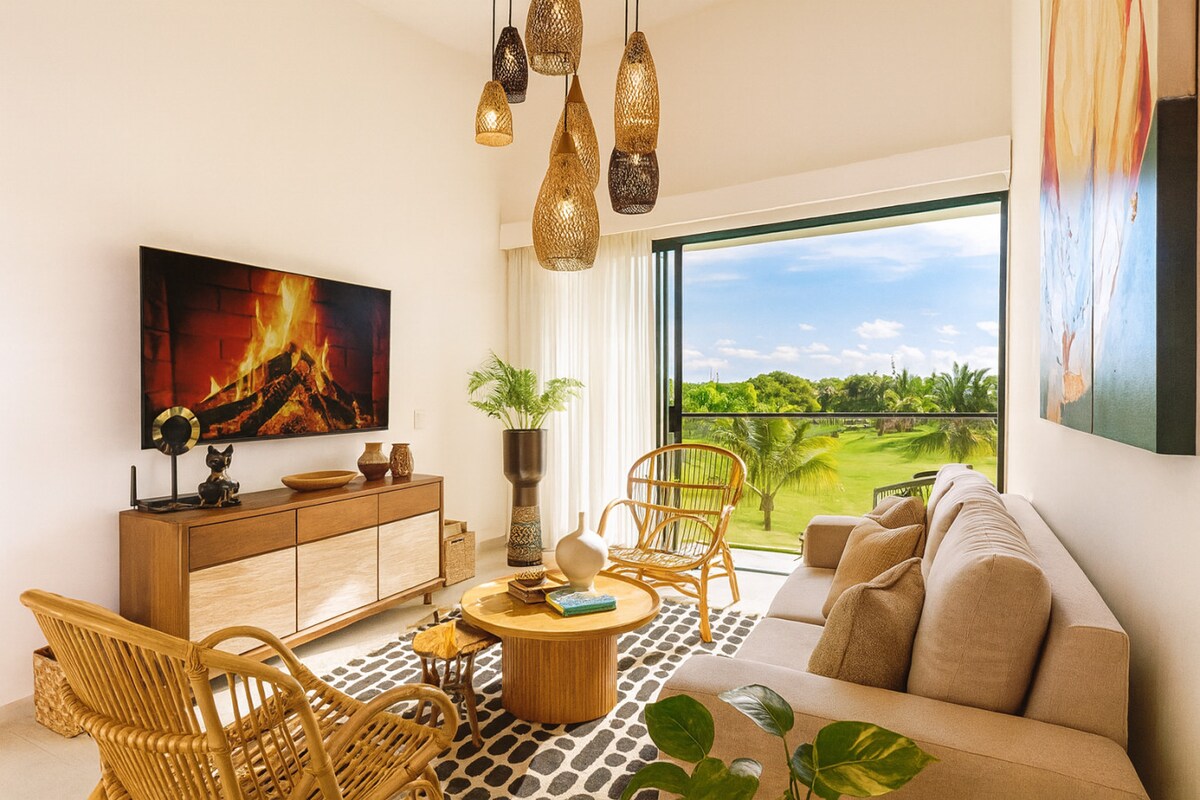 Experience the perfect blend of relaxation and elegance in this stunning new 2 bedrooms apartment, located in the prestigious Cocotal Golf & Country Club. Wake up to beautiful golf course views and enjoy direct access to a refreshing pool right in front of your terrace. Just 5 minutes to Bavaro beach and less than 3 minutes to all the restaurants and facilities. Book now and enjoy a peaceful centric retreat in one of the best locations in Punta Cana!