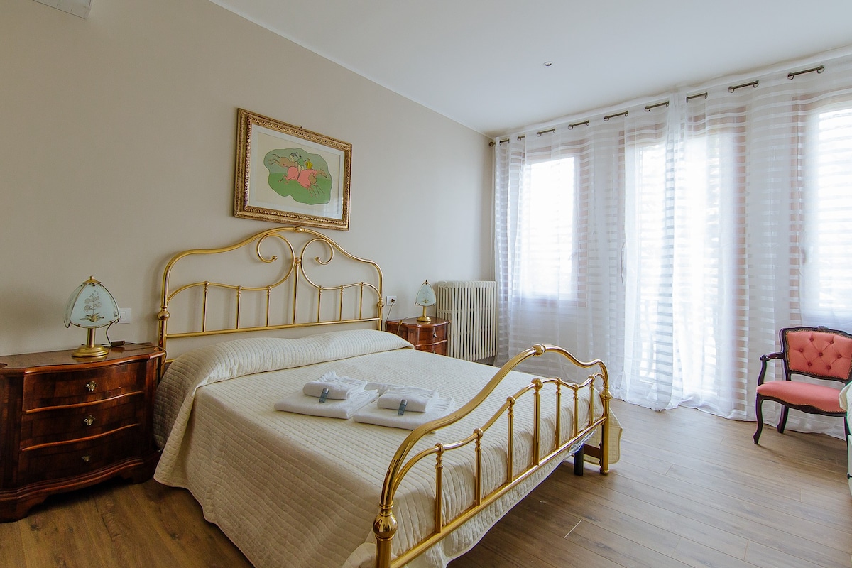 Bellissimo e luminoso appartamento al 3° piano, in centro storico a Piove di Sacco, comodo a tutti i servizi: parcheggio gratuito a 200 mt. treno per Venezia a 600 mt. e bus per Padova a 350 mt. Dispone di una zona giorno con cucina attrezzata + microonde, 1 divano letto singolo, scrivania, Smart Tv Full HD, bagno con doccia, camera con letto matrimoniale, terrazzo, lavatrice, wi-fi, aria condizionata; la culla/lettino è un servizio aggiuntivo extra su richiesta e a pagamento.