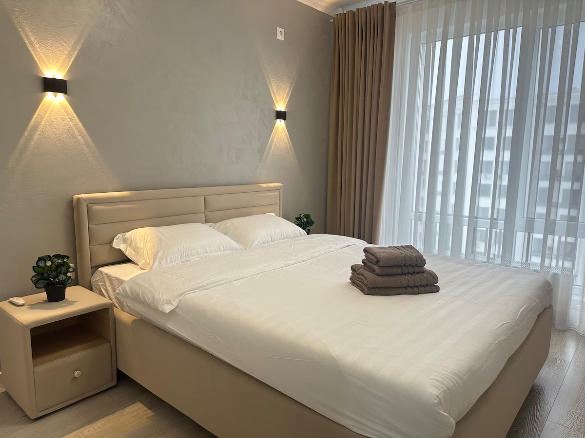 Enjoy a relaxing stay in the heart of Chișinău, in a modern and welcoming apartment. Its central location offers quick access to cozy cafés, restaurants, parks, and city attractions. We welcome you with: • Impeccable cleanliness • Fresh linens and immaculate towels • Bathroom essentials (gel, shampoo, toothbrushes) • High-speed Wi-Fi (500 MB/s) • Smart TV with Netflix • Independent self check-in The apartment has two bedrooms and a living room, accommodating up to six guests.