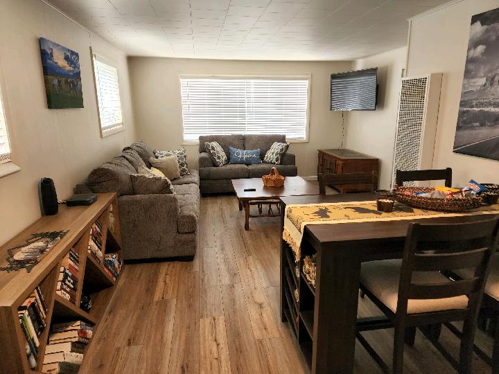 In the heart of Cody, WY - Your adventure begins when you walk out the door. Seek your favorite destination in every direction. From fly fishing the Shoshone, exploring nearby Yellowstone or galivanting across the gorgeous countryside... You will find it all here and more. Newly remodeled interior with brand new furniture, bedding and more. Charming, quiet and comfortable neighborhood within walking distance to town. Fully stocked with what you need to make your stay memorable.