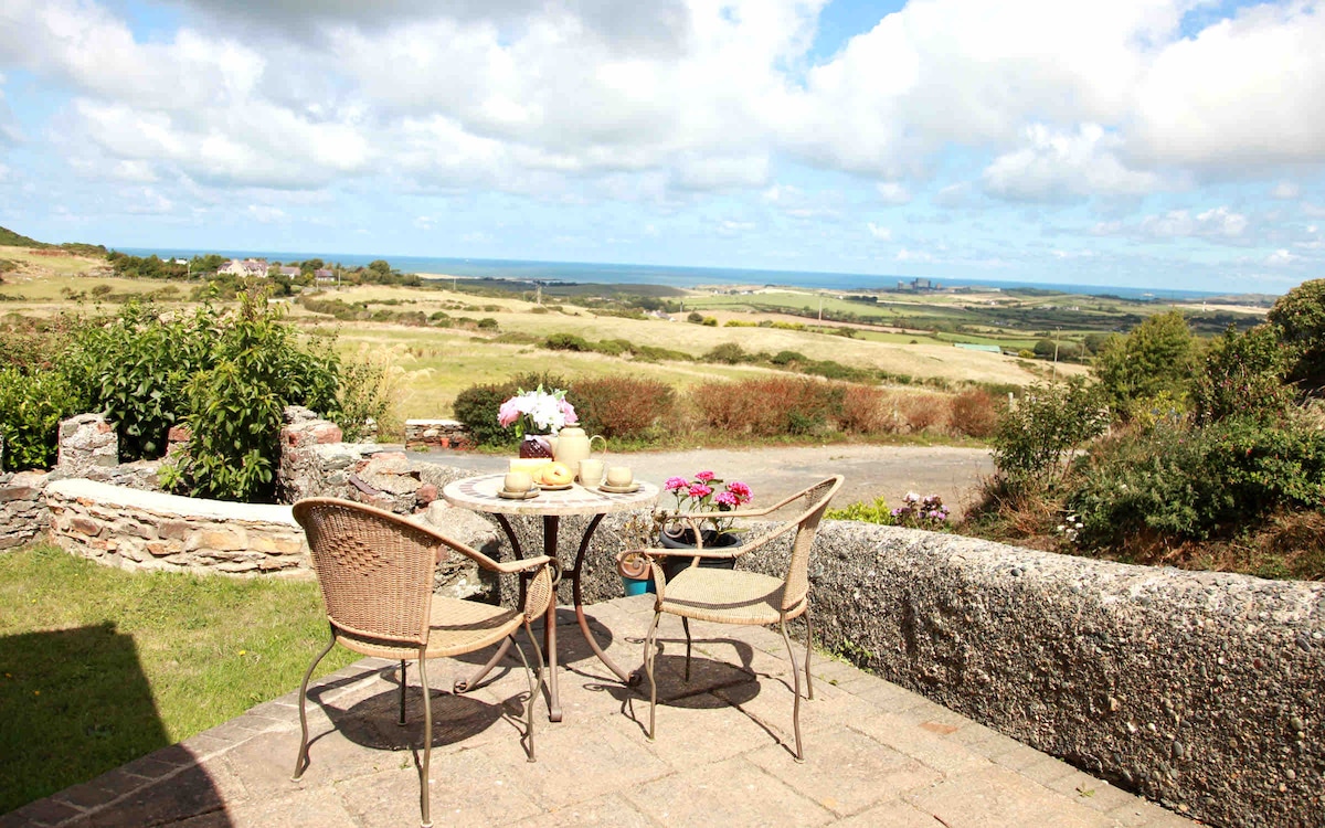 Breathtaking views of the entire island, the Snowdonia mountain range and across to the Isle of Man in peaceful, unspoilt countryside, minutes from Church Bay and the coastal path. Lovingly renovated the historical signal house was built in 1841 for Liverpool Docks. The interior is beautifully presented. A perfect retreat for couples or a family of up to 6 for fun or romantic breaks. 2 dogs welcome. Most of our land is now fenced off so your dog can roam reasonably safely in 5 acres.