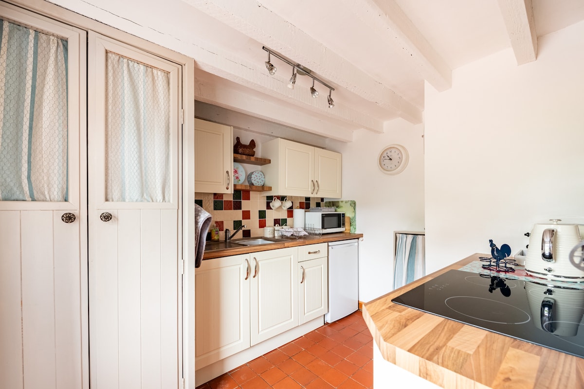 浪漫的乡村小屋、原木燃烧器、大花园