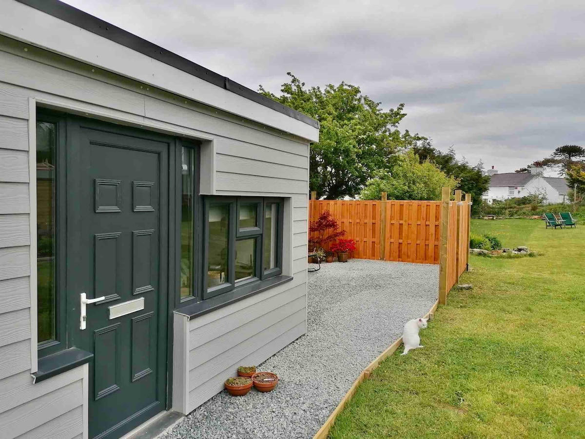 Enjoy the beautiful island of Anglesey in this small studio chalet with stunning views of the island. Within walking distance of a charming country pub serving good food. 10 minutes drive from Cemaes Bay and Bull Bay this is the perfect base to explore the island.