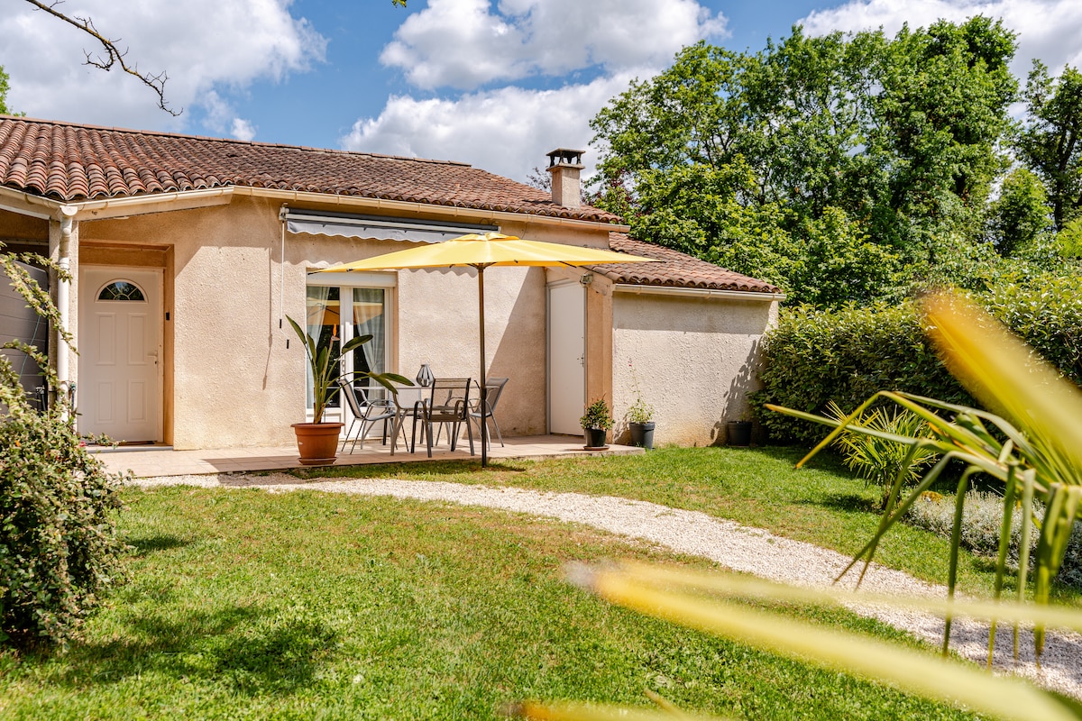 Charmante petite maison indépendante, comprenant 1 grande pièce salon avec canapé convertible, 1 cuisine toute équipée avec bar, four, lave vaisselle, frigo congélateur, micro-ondes, 1 chambre en mezzanine ouverte sur le salon avec 1 lit en 160, 1 salle d'eau avec douche et wc. Tv écran plat, lecteur dvd, chaine hi fi, jeux de société, livres, cd, dvd, lave- linge. WiFi Terrain arboré. Environnement calme et bucolique... Belle terrasse avec barbecue, salon de jardin. Lit fait à l'arrivée.