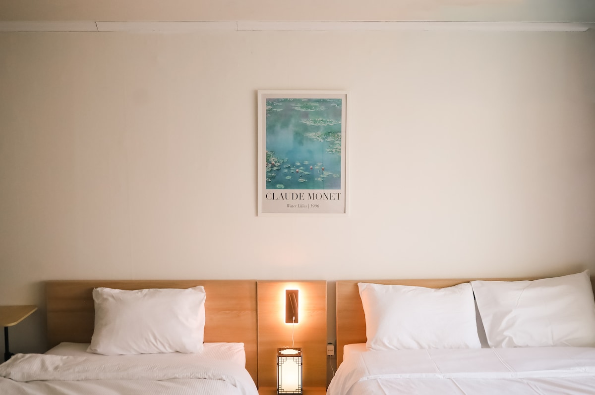 【免费停车】论岘站5分钟/机场巴士10分钟/4人房/街路树路/江南站5分钟/COEX 10分钟/南山塔20分钟